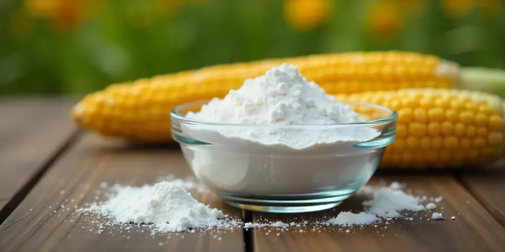 نشاسته ذرت از دانه های ذرت گرفت شده و عامل غلظت در غذاها و شیرینی هاست. این نشاسته عموما در شیرینی ها کاربرد دارد و برای لطافت کیک و شیرینی جایگزین آرد می شود. لذا شیرینی با نشاسته ذرت بسیار لطیف است. کاربرد نشاسته ذرت در دسرهایی مانند پودینگ و کاستر یا انواع سوپ است. در اغلب دستورها می توان دو قاشق از آرد را با نشاسته ذرت جایگزین کرد. همچنین نشاسته ذرت بهترین جایگزین برای پودر کاستارد می باشد. خواص نشاته ذرت بسیار بوده و از جمله آن می توان به خواص درمانی آن مانند از بین بردن سنگ مثانه، التهاب و درد مثانه اشاره کرد. همچنین ضد سرطان بوده و کلسترول خون را پایین می آورد. نشاسته ذرت بهترین پماد برای خشک کردن زخم هاست.