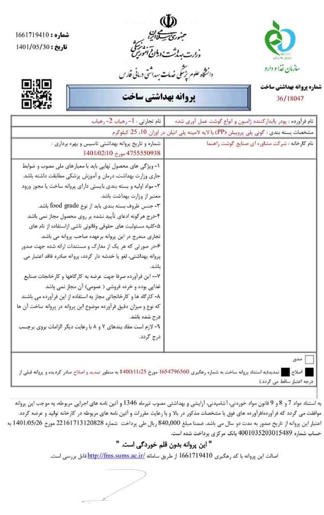 شرکت مشاوره ای صنایع گوشت راهنما به شماره ثبت ۱۷۷۶۲در سال ۱۳۸۴ تاسیس گردید.