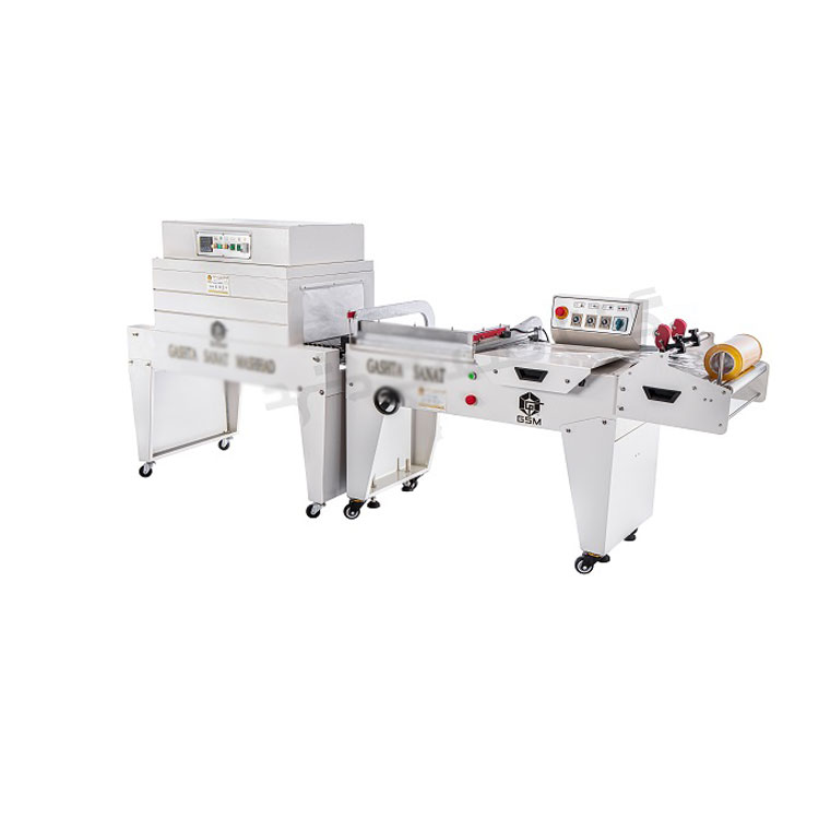 شرینک پک مینی تونلی پنوماتیک مدل GSM-BSA450-FQL 450C دارای تیغه برش از جنس سرامیک جهت کیفیت بهتر دوخت و برش و عمر طولانی